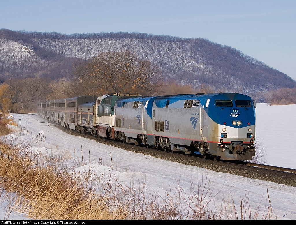 RailPictures.Net Photo: AMTK 198 Amtrak GE P42DC at Donehower, Minnesota by Thomas Johnson