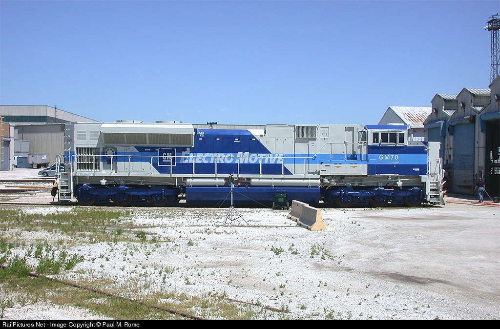EMD's newest locomotive, the SD70ACe, GM 70, was being tested prior to being sent west to the AAR Test Facility in Pueblo Colorado. GM 70 is one of three prototype Tier-2 locomotives that EMD has completed to compete with GE's new Evolution locomotive.