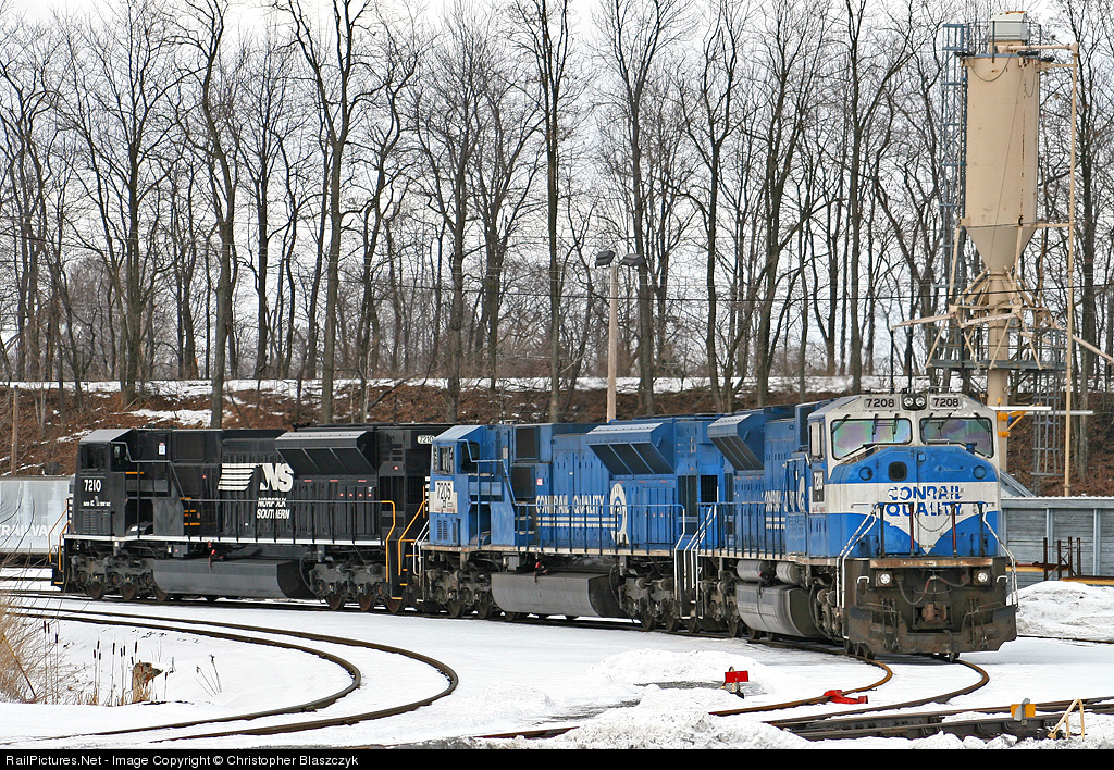 Dress blues, again. With only two SD80MACs remaining in blue, the chances of seeing them together gets rarer and rarer. Therefore, when AB2 and I found the 7205 and 7208 sitting together in Cresson in November (seen here), we couldn't believe our luck. Imagine our surprise, when on our next visit, in January, we again find them together in Cresson.