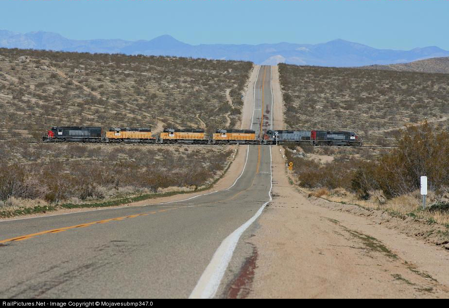 Returning light power to Trona after setting out cars at Searles, 6 Trona units cross Searles Station Rd.
