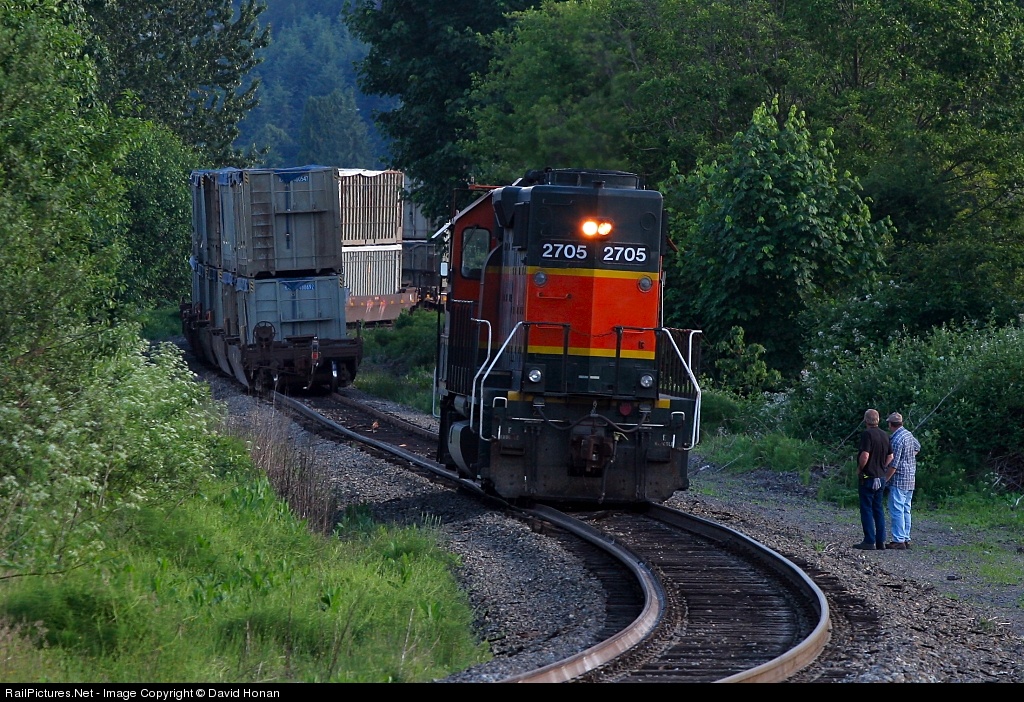 Every photo is supposed to have a story that goes with it, and this one is about an everyday event that didn't quite unfold as it normally does. // One warm summer evening, BNSF's daily garbage train from Everett to Roosevelt, WA, departed Delta Yard with its usual trio of three SD40-2s up front and a fairly long train in tow. The Seattle East Dispatcher figured the train had sufficient time to pull through Everett and clear the single track before Amtrak #516 was due, so he lined up the train to Mukilteo. But this trip wasn't like most others, and for whatever reason the train slowed to a halt while strung out through PA Jct. and Broadway, blocking not only the passenger station platform but also the single-track route under downtown. The power simply wasn't up to the task of yanking the train through the short but steep 2% grade on a 10-degree curve just north of PA; having come to the logical conclusion that they had stalled, the crew called the DS to report that supposed fact and request a shove from one of the yard jobs at Delta so they could clear up without causing too much delay to Amtrak. Before long, a light engine was dispatched out of Delta, and it trundled on down towards C-Line Jct. Coming across Pacific Ave. with the stalled train in sight, the yard crew suddenly found themselves experiencing a slightly rougher ride than normal, which shortly thereafter caused this to crackle over my radio: "Uh, Dispatcher, this is the Delta Yard job at C-Line, we're on the ground and so is the garbage train." I headed on over to Pacific Ave. to see what I could see, and was greeted with this scene of the light engine grounded between two rolled rails, double-stacks full of garbage canted to the left, and the yard job's crew pondering the scene while posed in the classic "well, what the heck do we do now?" posture.