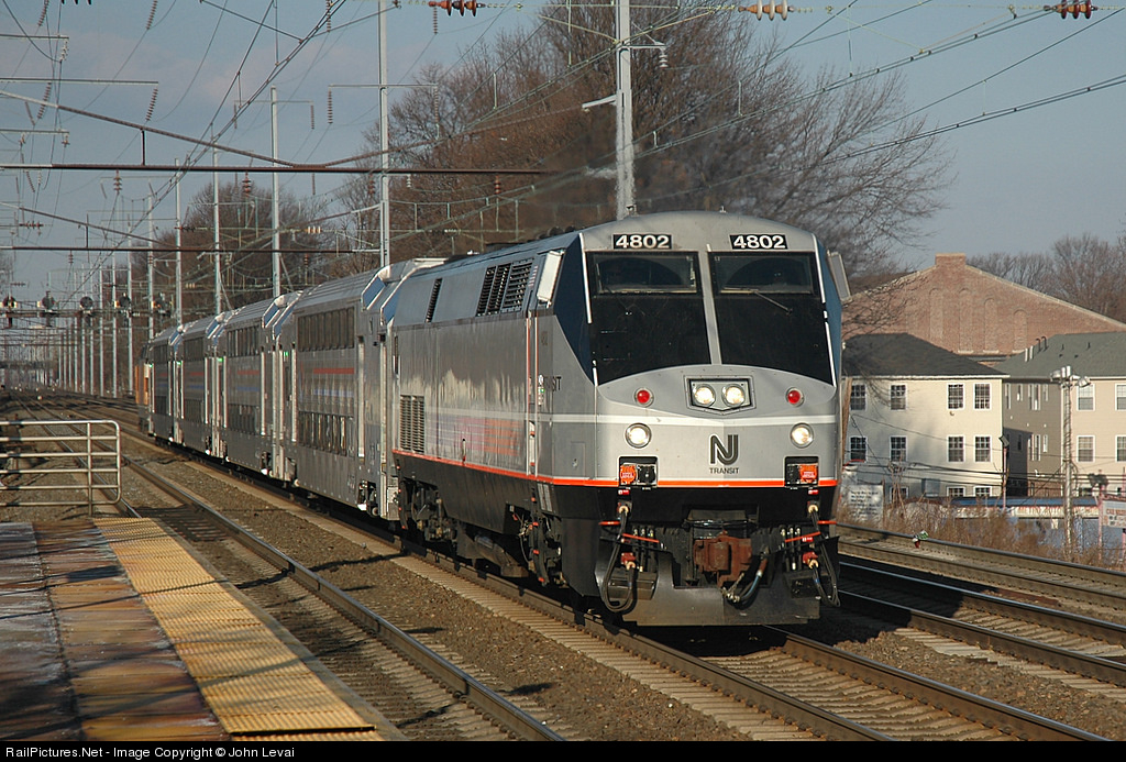 | This ACES train is a long way into its journey, as it passes Elizabeth station, after departing from Newark Penn Station. |
