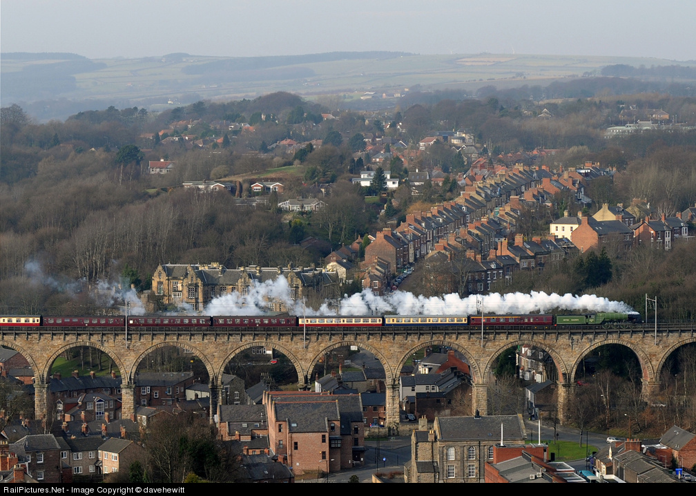 Newest steam locomotive Tornado heading to Newcastle over the Durham viaduct on its maiden passenger carrying turn.