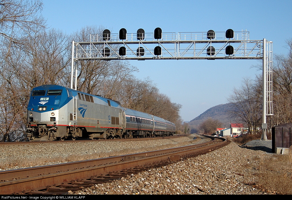 RailPictures.Net Photo: Amtrak 19 Amtrak GE P42DC at Cove, Pennsylvania by WILLIAM KLAPP
