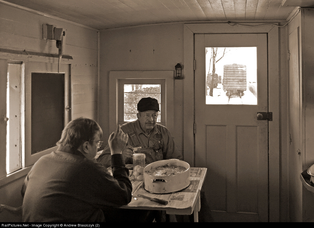 The crew enjoys a warm pot roast lunch in the caboose before the train is assembled in the Owosso yard and they head north into the heart of Michigan.