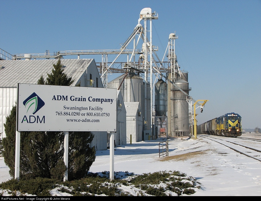 KB&S 705 slows to pick up two cuts from the ADM silos at Swanington.