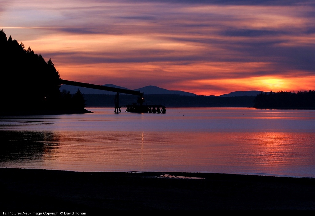Having never lived near a large body of water before, I had no direct experience with how awe-inspiring sunsets in such regions could be. Shortly after moving to the Seattle area, I found out in a big way when railfanning the southern reaches of Puget Sound one February evening. With the sun just above the horizon and the clouds stained a variety of shades of orange, pink and purple, the tranquility of this spectacular scene was spoiled by the headlights of a northbound train spearing the darkness -- along with the train's attendant rumbling -- while rounding Tatsolo Point, passing under the barge dock's aggregate conveyor. Nevertheless, what an amazing conclusion to the day.
