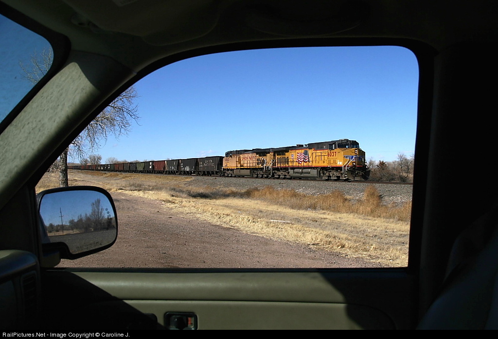 As I was composing this shot waiting on the train, a state police officer appeared at my window and asked me what I was taking a picture of. I told him I was waiting on a train, and wanted to frame it in my passenger window. He gave me a very strange look, checked my identification, and then was on his way. Moments later UP 6037 rolled through on its way south toward Pueblo.