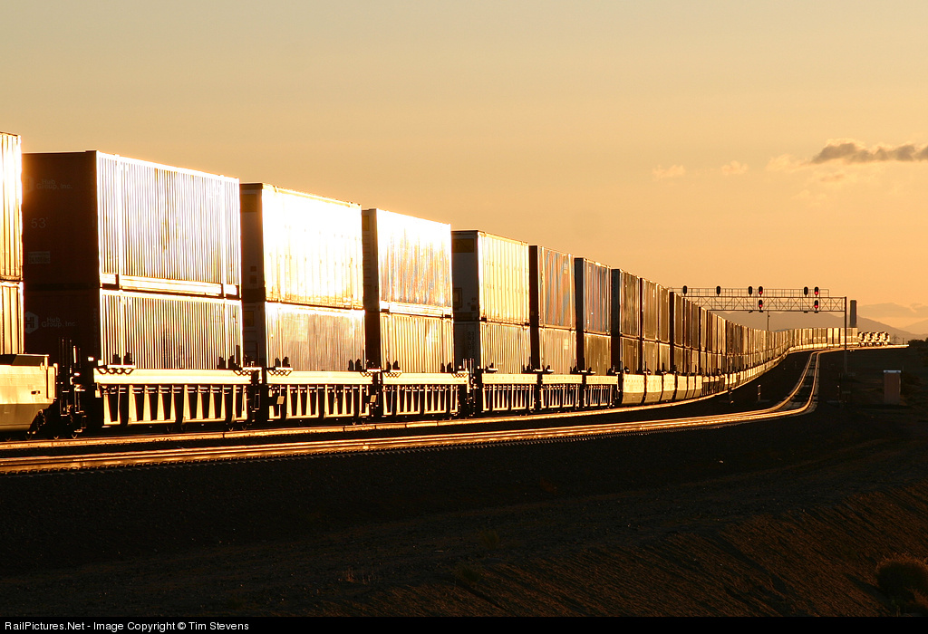 BNSF 4383 leads a Q train into the rapidly rising sun.