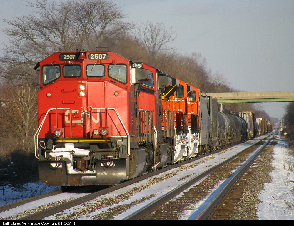 CN 2507 is on point of this waiting westbound. Note BNSF 9314 & 9315 brand new from London, Ontario.