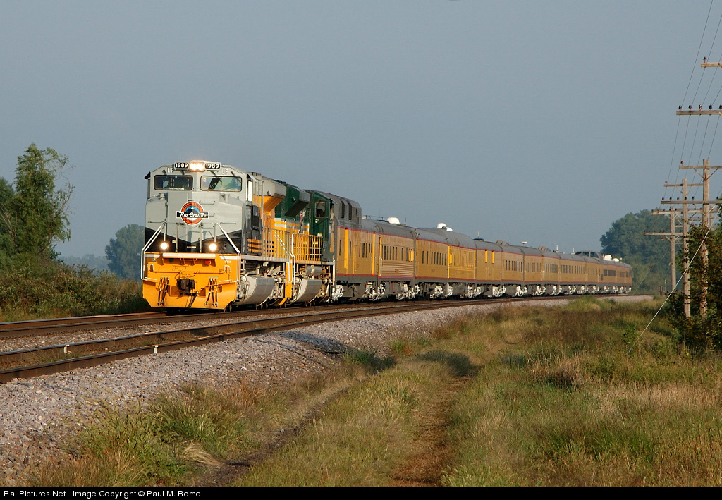 | UP 1989 and UP 1995, UP Heritage units hustle a UP Business train equipment move eastbound through Valley Nebraska. |