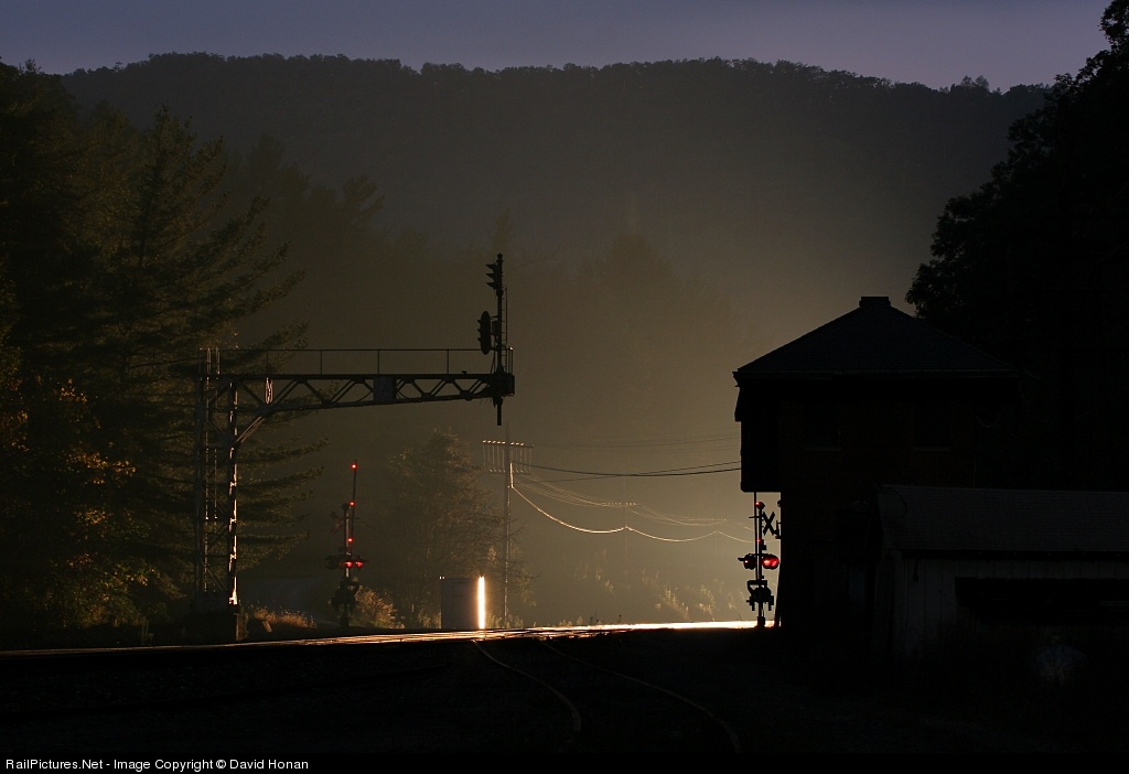 Some 44 years and change after Tom Sink's recently-posted photo, I found myself at the same location, only I was surrounded by silent relics of a bygone era instead of in the midst of a bustling mountain-top railroad scene. The C&O's A Cabin was crouched next to the tracks, morosely watching modern CSX trains roar past while mumbling half-intelligible tales of the good ol' days gone by. The signals on the cantilever had long ago darkened and been turned to the side as though to say to passing crews, "move on, nothing to see here." Missing was the classic crossbuck, replaced by a bright and noisy crossing gate. Not missing on this autumn evening was the drama of mountain railroading: The ever-increasing roar of a pack of GEs sturggling to lift an eastbound train those last few feet from Alleghany Tunnel to the summit, the slowly-brightening glow from the headlights as the train seemingly took forever to approach, the faintly-heard ding-ding-ding of the crossing's bells announcing that, indeed, the train was making progress towards its goal. A Cabin may no longer be an important link between the coal fields and tidewater, but the never-ending battle between railroads and nature continues to be fought below its shuttered windows every day, an experience which can still be witnessed by those who journey to this quiet gap in the mountains.