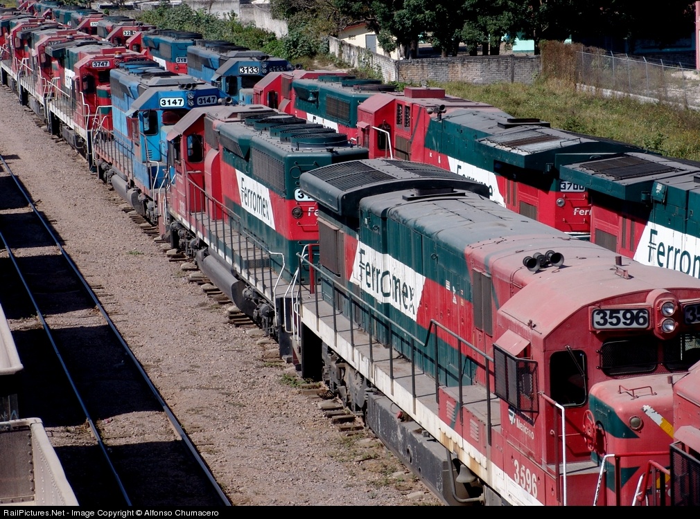 | Lot of engines taking a sun bath in Tepic, there are more of 50 FXE engines stored here, C30-7's, C30-Super 7's and SD40-2's. |