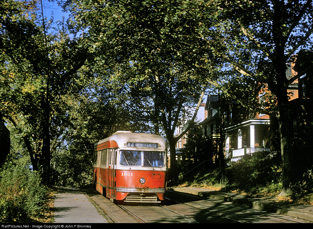 | Many Pittsburgh streets were just barely wide enough for two tracks but few were so well covered with a tree canopy that it was difficult to find sunny locations to record. One such opportunity presented itself on an early fall morning. |