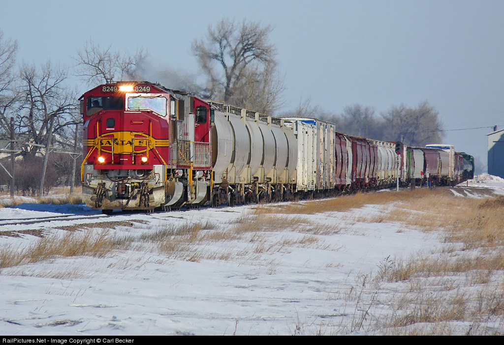 RailPictures.Net Photo: BNSF 8249 BNSF Railway EMD SD75M at Thompson, North Dakota by Carl Becker
