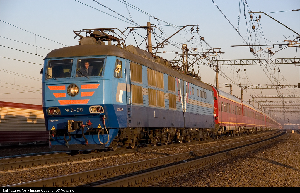 CHS6-017 with by brandname train of N1/2 "Red Arrow" Saint Petersburg - Moscow, station Khovrino, October railway, Moscow. More photos: http://train-photo.ru