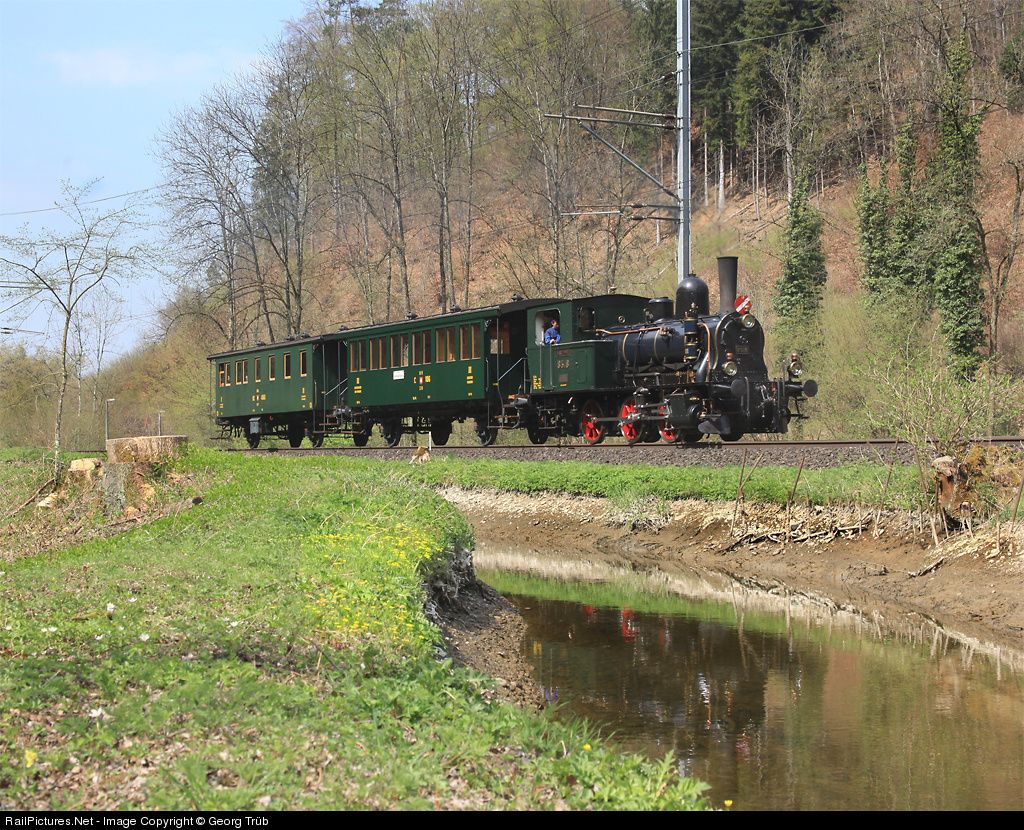 | E 3/3 8518 of DVZO (Dampfbahn Verein Zürcher Oberland/steamtrain association Zürcher Oberland) with cars C 106 and BC 4563 is on the way from the winter base in Uster to Bauma. From Wetzikon to Neuthal the train will serve as a birthday party special. On the 4 kilometre long single track section between Uster and Aathal there are 12 S-Bahn trains per hour and it is very difficult to insert a 45 km p.h. train! |