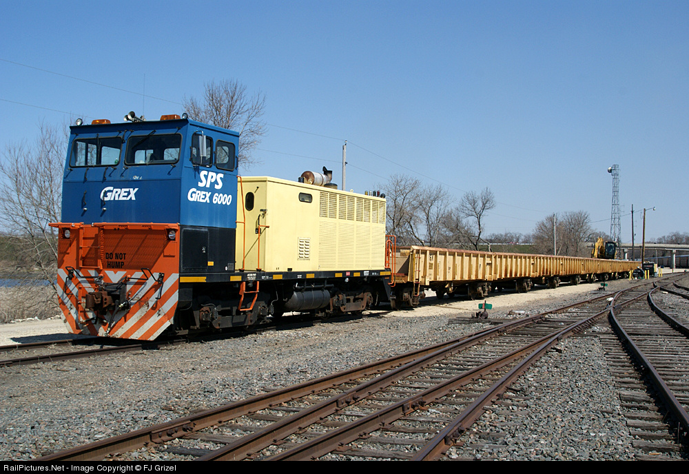 SPS GREX 6000 provides the power for a tie train tied up in the BNSF yard at Savanna, Illinois.