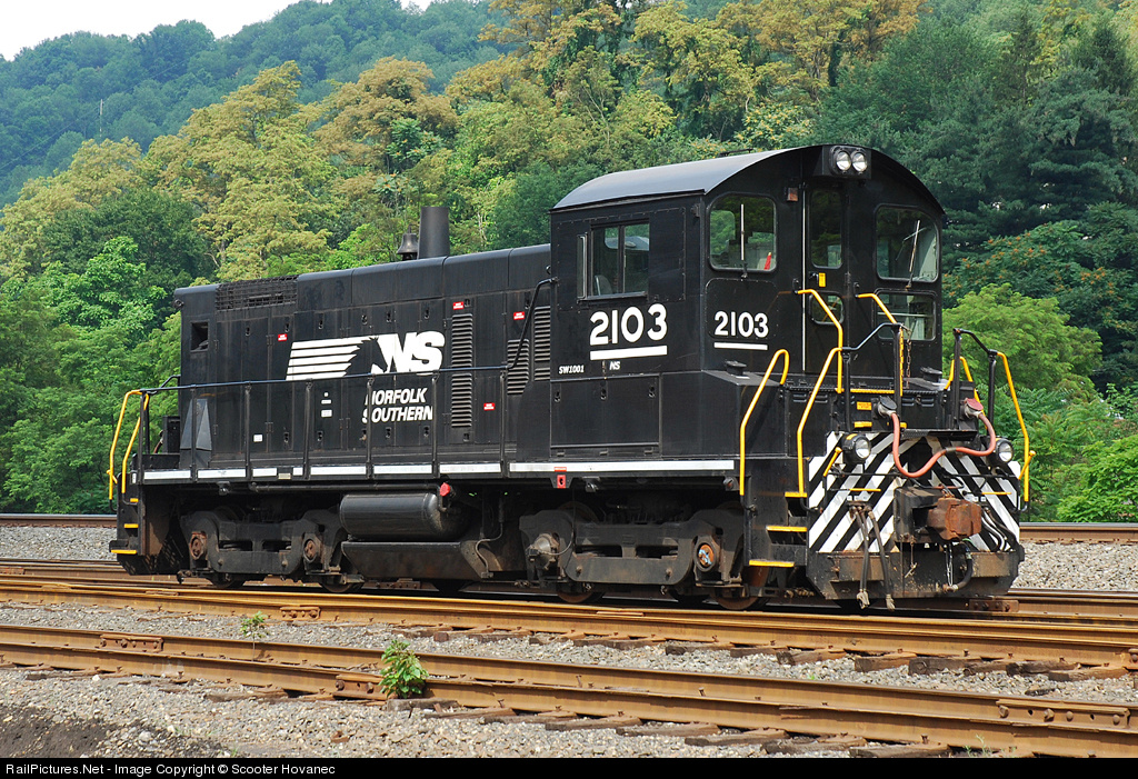 Normally some of EMD's biggest work this yard in the form of SD80MAC's on the locals out of South Fork. However, this little fellow was just visiting, and was picked up later in the week with out ever turning a wheel by itself in the yard. NS 2103, ex NS 9413, exx CR 9413, nee RDG 2613, built 11/73, builder no. 73623-13, order 73623.