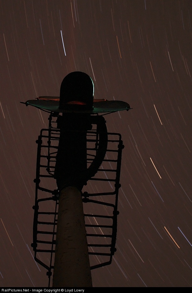 | The Westbound intermediate signal at Talcott, under a swirling spring sky. 1085 second exposure @ f5.0, ISO 100 |