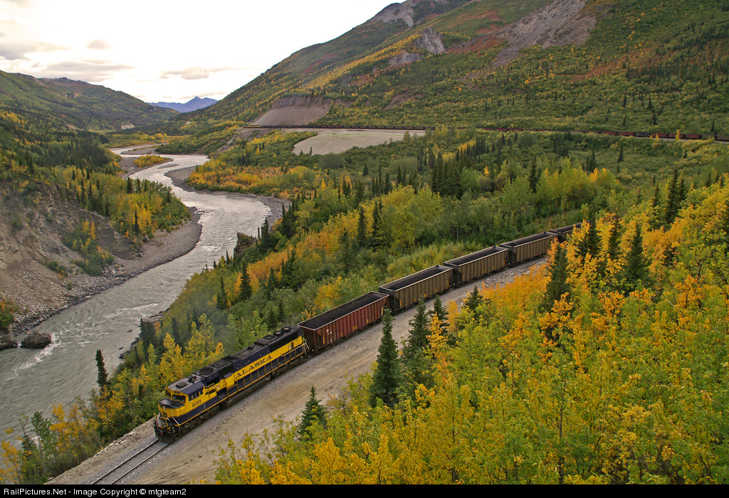 Alaska DPU 4001 trails train 183S the loaded export coal train headed for Seward to unload. See here near the former Moody Tunnel.