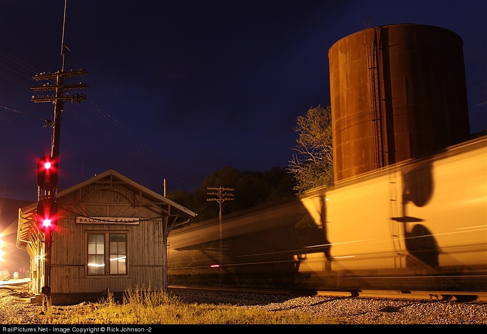 Eastbound G864-06 passes the former C&O station and water tank at Balcony Falls not long after sunset. The station is now used by CSX as more of a storage than anything. Canon EOS 50D