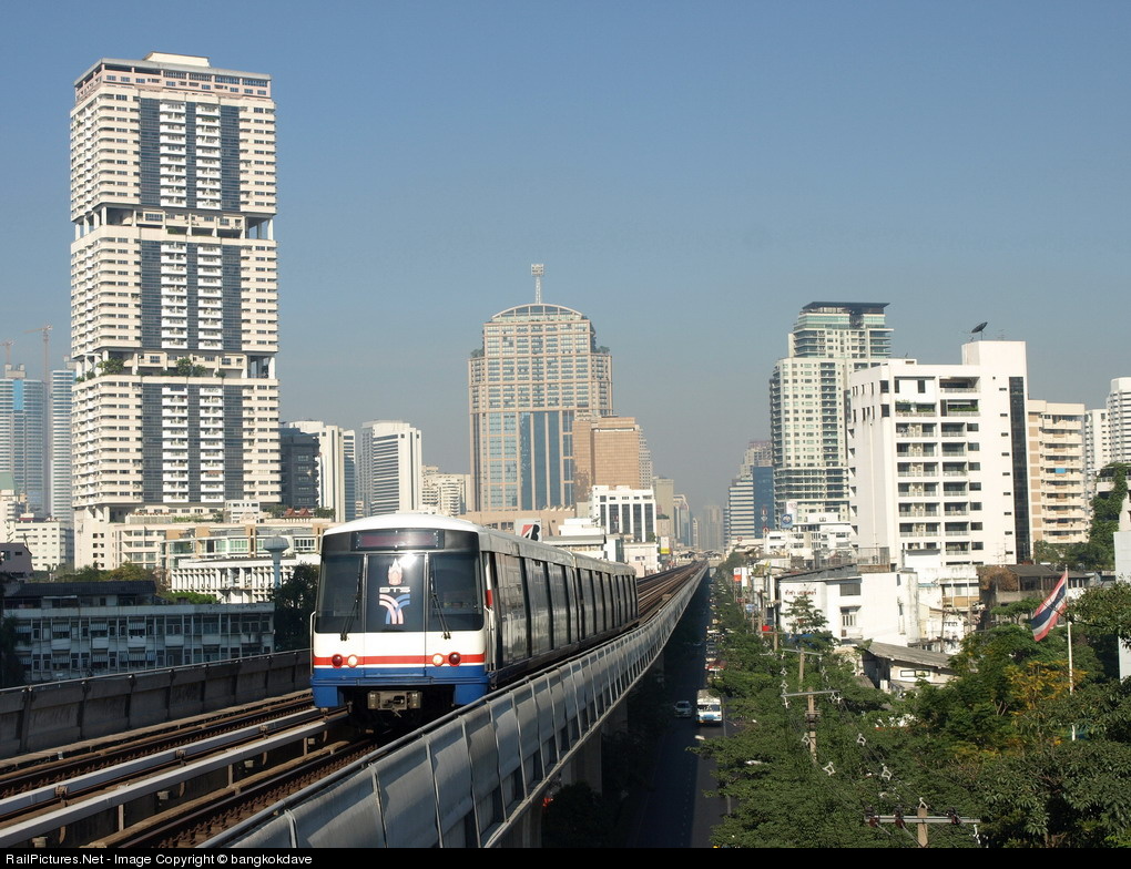 The 'Skytrain' is Bangkok's elevated subway service. It provides a much-needed relief from the city's nightmarish traffic snarls and offers a great view of its central neighborhoods. This line runs above Sukhumvit Road with a view towards city center.