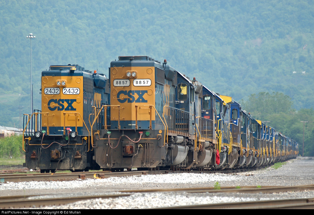 Two lines of locomotives in the CSX yard at Cumberland. It was erie this Memorial Day at the shop and yard..no trains, and not one locomotive was idling, total quiet, the first time I've ever seen this. There are at least eighty or more engines in these two lines.