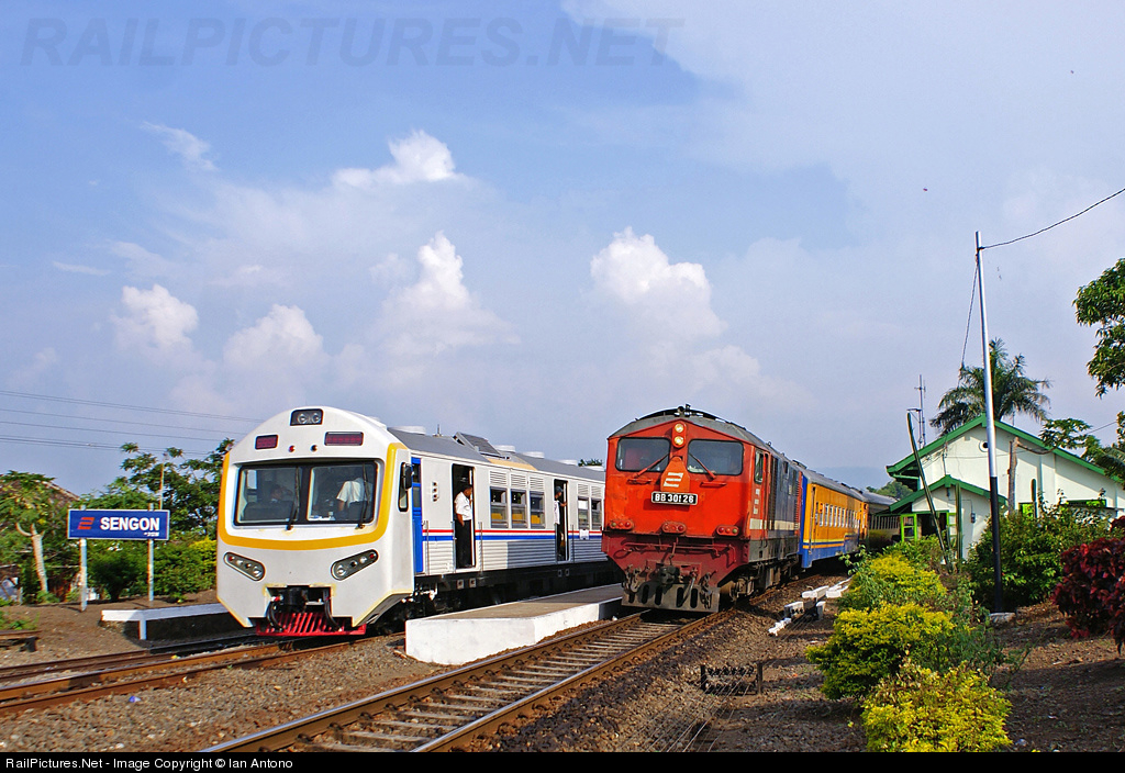 The New DEMU (eks EMU Hyundai) stopped in Sengon Station,for crossing with Tawang Alun Express (Banyuwangi-Malang,VV) before proceed the trial run to Lawang. The next time, PT Kereta Api Indonesia allocated this DEMU to Local Commuter Train in Surabaya. I like it.