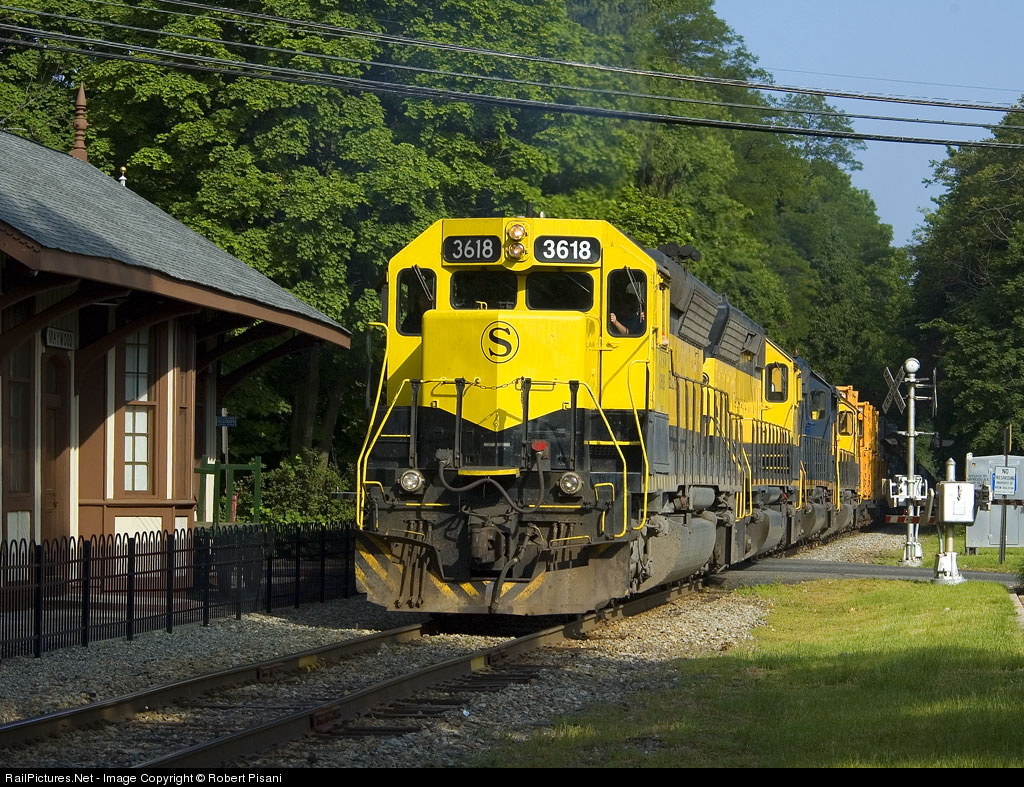 Currently running only twice-weekly, NYS&W road train SU-99 passes the restored Maywood Station. Power includes 3618 (SD45), 3634 (SD45), CSX 8835 (SD40-2) & 3010 (SD40T-2).