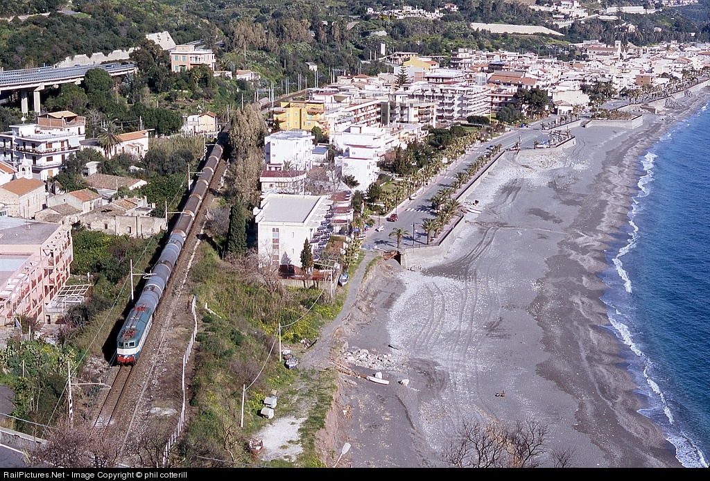 A vintage class 636 heads a southbound freight along Sicily`s east coast.