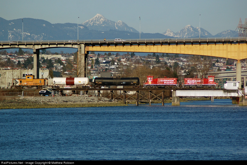 It seemed like just a normal day for me as I went out to take pictures of Canadian Pacific's O Yard crew, as I often do so. The unique pictures you can capture of the O Yard are some you can't find anywhere on Canadian Pacific. Unfortunatly, little did I know that this was one of the last runs for the O Yard job and the two SW1200rsu's. Five days after this picture was taken the O Yard job was cancelled, and after 20+ years of 1237 and 1239 handling the O Yard responsibilities, they were brought back to the Port Coquitlam Yard. Now just the occasional road switcher comes to the O Yard to service customers. This does give me a chance to capture GP38's crossing into Richmond for probably the first time ever, but with the reduced service you have to wonder if even their days are numbered. As I mentioned before, this was just a normal day for the O Yard as they cross the Fraser River into Richmond for one of the last times...