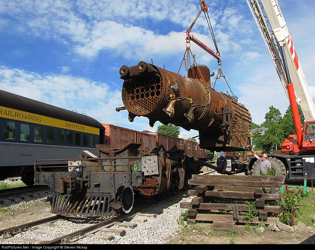 The boiler of 76 is placed on its frame after several years of sitting on ties.... this is just one of the many things being prepared/moved to get ready for trainfest.