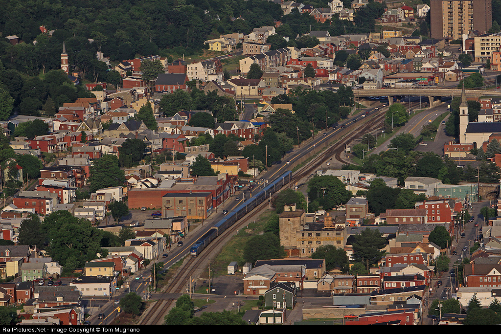 | The Capitol Limited passes thru downtown Cumberland just moments after departing the station and starting its journey west over the famed Sand Patch Grade AMTK 81 AMTK 69