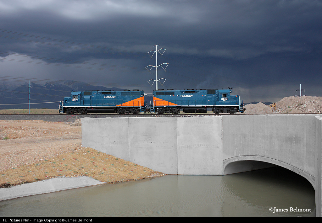 | While a strong storm system moves in from the southwest, a duo of Savage Bingham & Garfield EMD's ramble slowly down the former D&RGW Bingham Branch at West Jordan, Utah. SVGX 8620 & 8619 delivered a train of ribbon rail to the yard at Welby for UTA light rail construction. By 2012 this right of way will open as a new TRAX light rail route between Murray City (Fashion Place West) station and Daybreak station in South Jordan. |