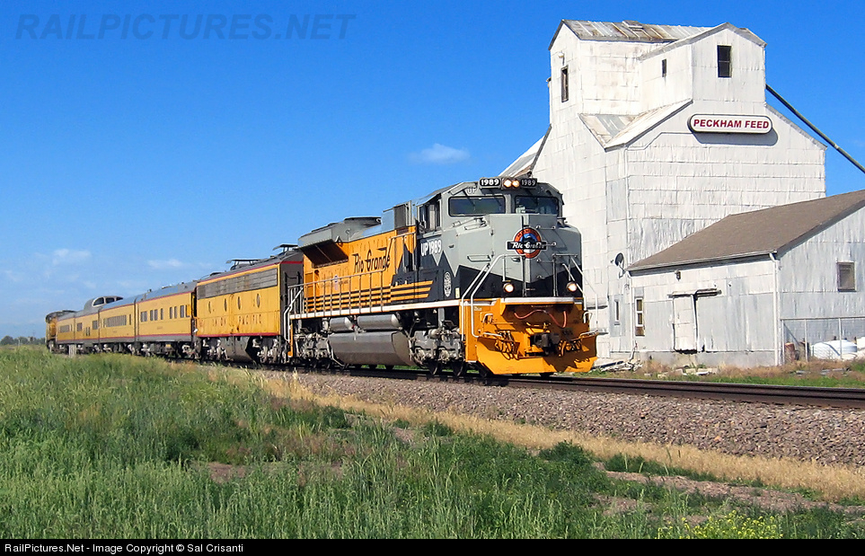 | UP Heritage Unit 1989 leads this Operation Life Saver Special, seen highballing Peckham, CO. The trains next and final Stop is La Salle, CO. |