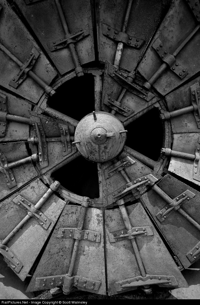 The working end of the rotary snowplow in the yard at Steamtown NHS.