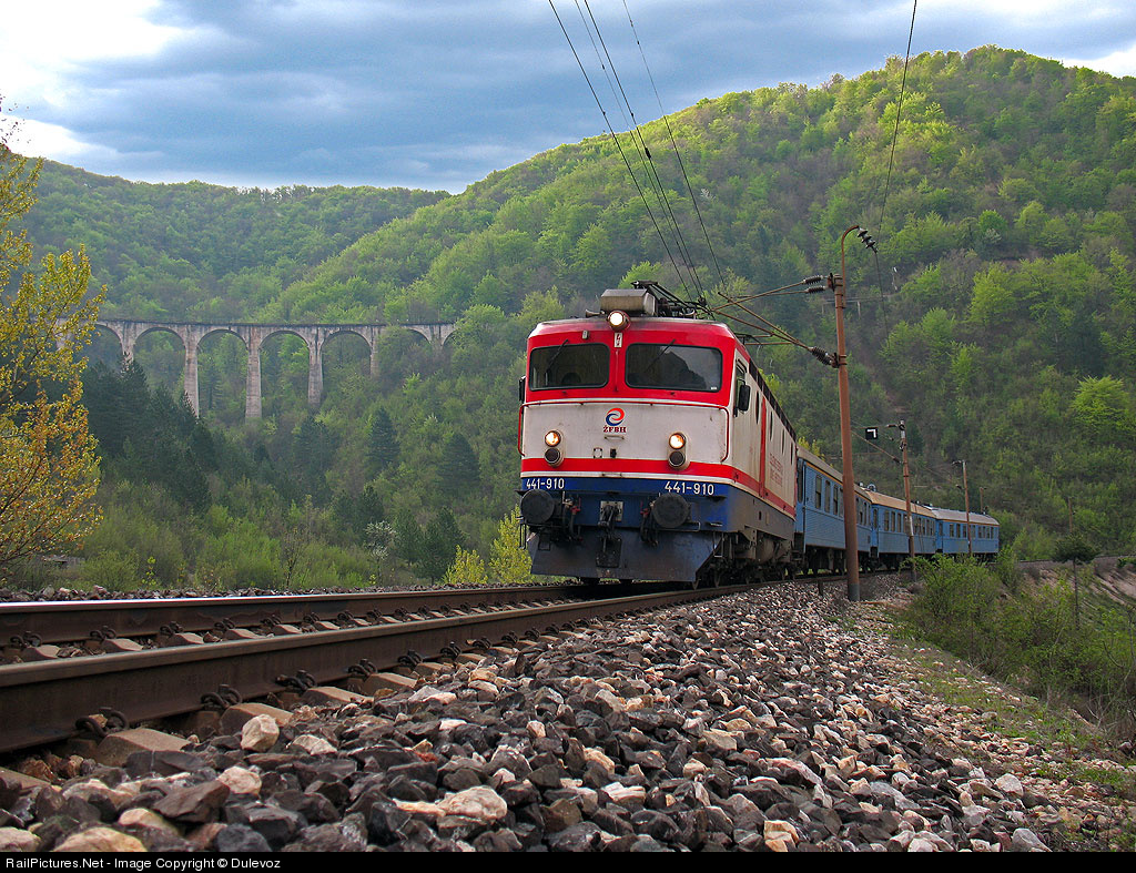 441-910 with fast train 391 (Sarajevo-Ploce) comes down between station Grad and Ovcari. The bridge background is on the same railway line, just one serpentine above.