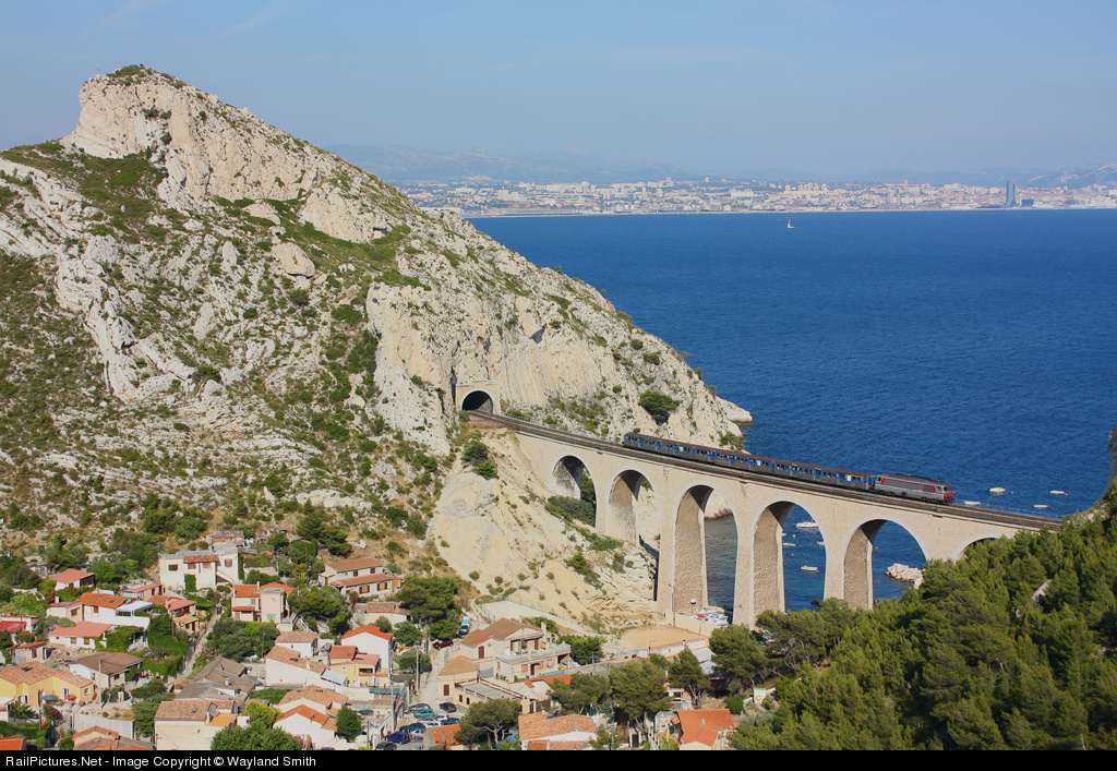 Possibly the delayed 1804 Marseille - Miramas, as the 1834 was supposed to be cancelled owing to a localised strike of certain categories of SNCF personnel (very common in Provence Alps Cote Azur (PACA). Running slightly late even for the 1834, SNCF class 67000 crosses the viaduct at La Vesse.
