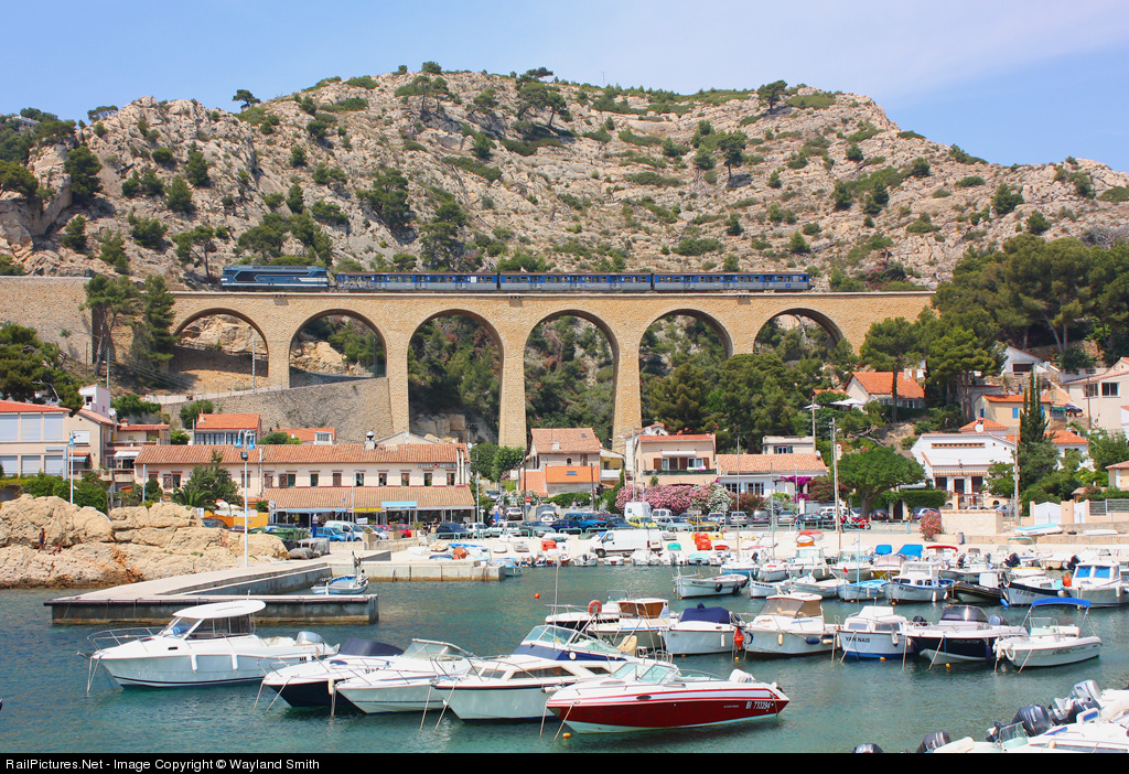 The 1434 Marseille - Miramas crossing the viaduct approaching La Redonne station.
