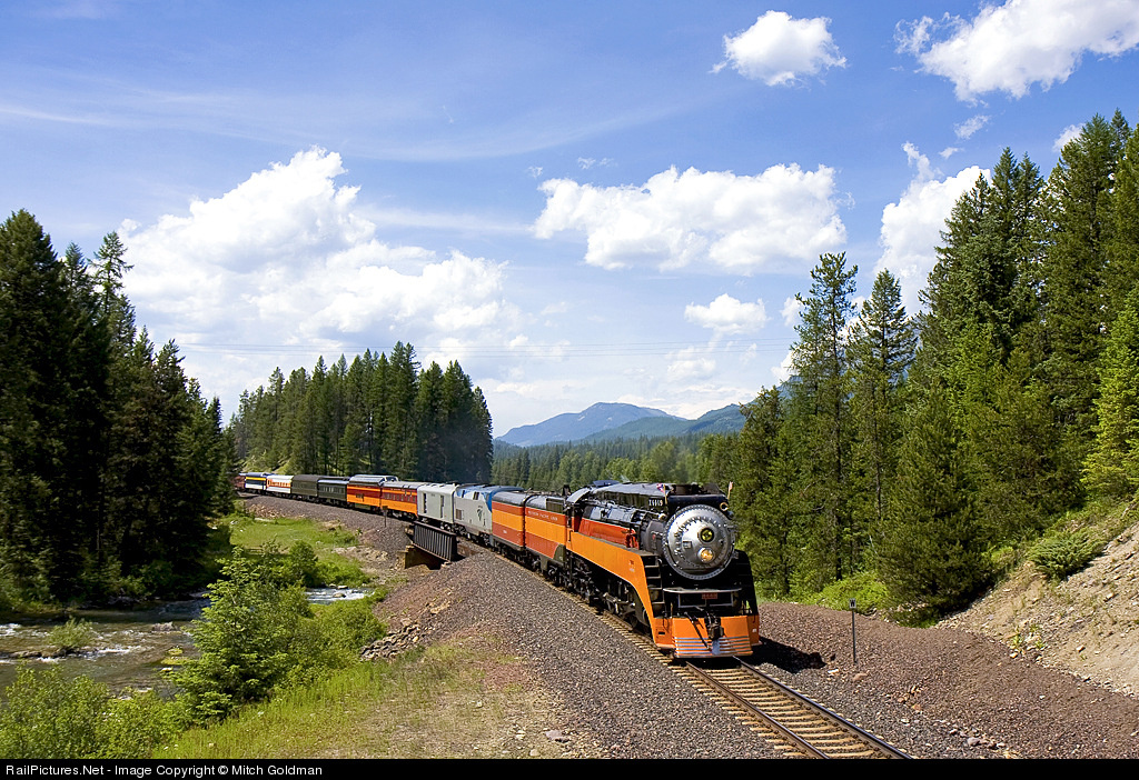 | SP 4449 leads a string of private cars through Montana on one of the most scenic routes in the USA. By far one of the most thrilling (and challenging) chases I've ever participated in. Kudos to the various groups that made this historic trip possible! |