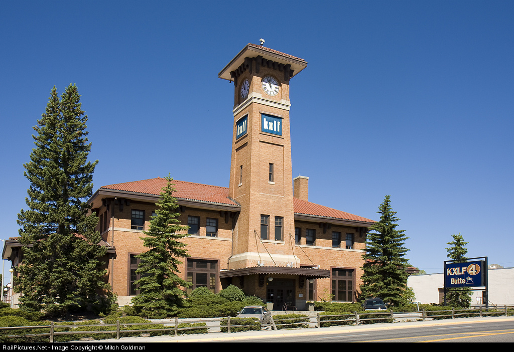 The Milwaukee Road leaves it's footprint in Butte, Montana with one of her classic tower depots. The restored stub end station is in downtown Butte, Montana and home to KLXL television studios. Both the Great Northern and Northern Pacific Railroad Depots are near by.