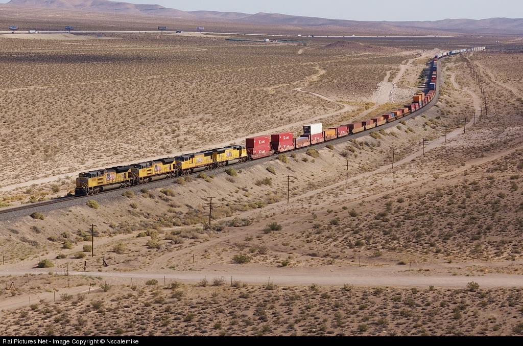 | This is a Long Beach, California bound intermodal train, passing through the "S" curve at Jean Nevada |