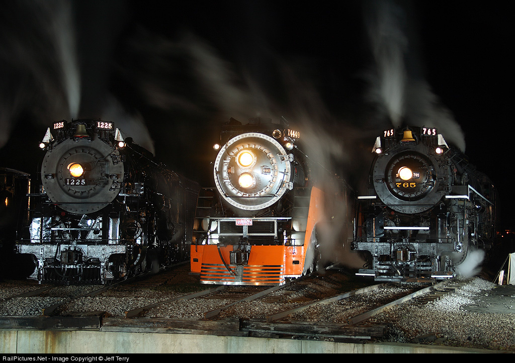 Three Lima superpower steam locomotives under steam for Train Festival 2009. Lighting by Steve Barry and Pete Lerro.