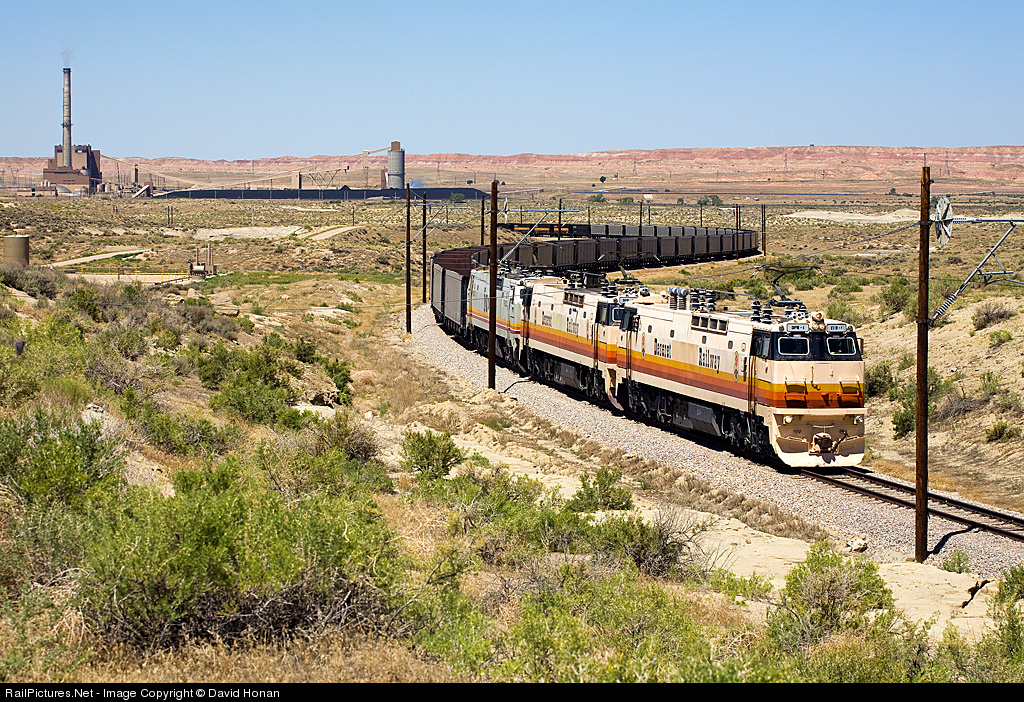 Imagine being so far out in the middle of nowhere that it's nearly an hour's drive to the nearest gas station. Imagine sitting in this absolutely middle-of-nowhere spot, waiting for the Deseret Power Railway's empty coal train to depart Bonanza Power Plant, and seeing a big white pickup bump over the next crest in the road. Image the utter shock you feel when the truck pulls up next to you and the driver leans out his window to ask: "Are you Dave Honan?" (OK, so maybe you wouldn't feel much in the way of utter shock, since that's not your name.) This was my introduction to fellow RP contributor Dick Ebright, who was tremendously gracious in providing this stranger in a strange land more assistance and advice than I could have expected during the two days I spent as a guest in his neighborhood. After we spent a while chatting, the radio crackled to life with the engineer's announcement that his train was pulling from the plant, and we captured the train passing by our cameras at 33 Mile.