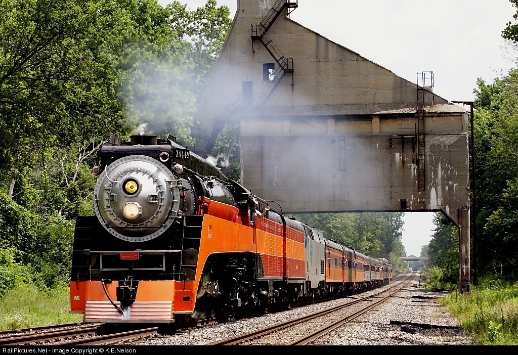 SP 4449 passes under an old Grand Trunk Western coaling tower at Lansing headed west for Battle Creek and points west like CP 502 on NS.