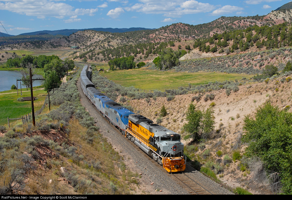 The Rio Grande heritage unit was a surprise leader of the eastbound California Zephyr due to a malfunctioning Amtrak engine. UP 1989 led the train all the way to Chicago.