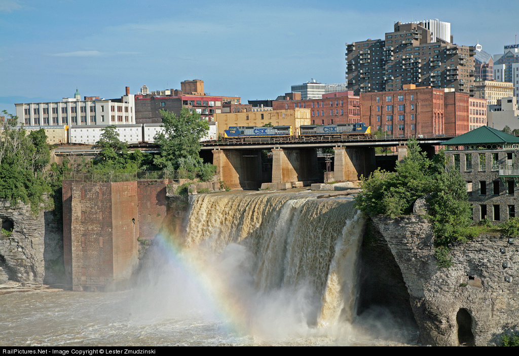 Southbound stacks pass High Falls and a rainbow. Thanks to all that shared their wonderful shots of High Falls that inspired me to make the trip.