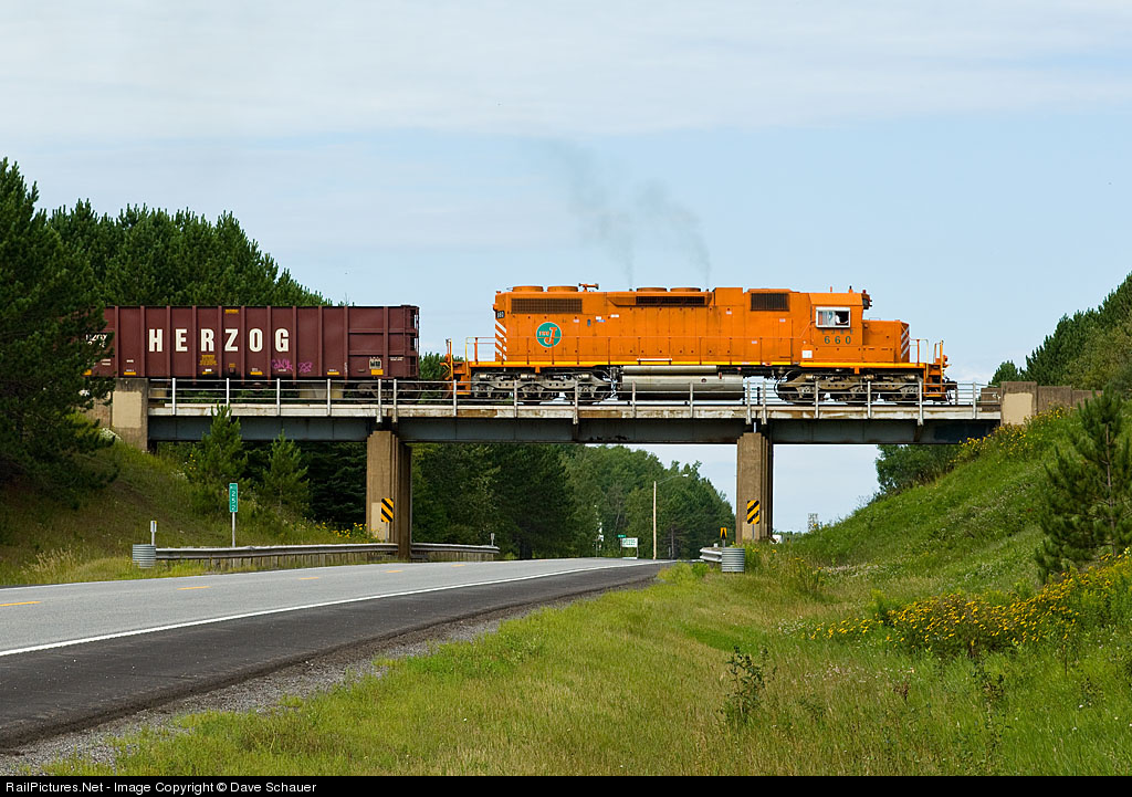 EJ&E 660 is in run 8 working an empty ballast train over the Rainy Sub (DW&P) north of Duluth. The lone unit could barely muster 25 mph, half the allowed speed on this subdivision.