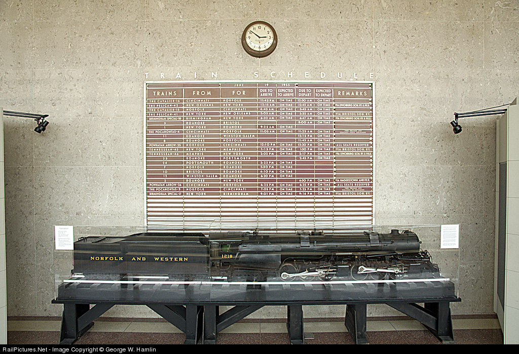 RailPictures.Net Photo: Norfolk & Western Arrival & Departure Board at Roanoke, Virginia by George W. Hamlin